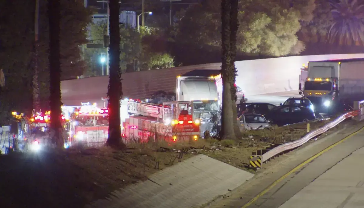 El accidente ocurrió alrededor de las 4:46 a. m. en la rampa de transición de la autopista 5 en dirección sur hacia los carriles de la autopista 10 rumbo al oeste. De acuerdo con los primeros reportes, uno de los vehículos involucrados se incendió tras el impacto, lo que obligó a la intervención de bomberos del Departamento de Bomberos del Condado de Los Ángeles.